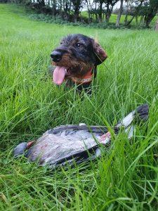 I shot a few ducks during October, I don’t shoot many, a brace here & there is all I need and October provided just that. I stopped at a spot near home on the way back from a rabbit job one evening and managed a mallard and a gadwall and a few evenings later bagged a couple Of Teal. One thing I have noticed in my home area this year is an increase in Pigeons. That may sound unusual but this is not a place we usually see very many. The mainstay is sheep & cattle farming, with crops being almost non-existent, but being coastal on the occasion that there is the odd field of Barley or Wheat which on occasion does happen, it seems to draw ducks for miles after its cut. Its really only the last few weeks I noticed the Pigeon increase and more notably behind my house, a small square field surrounded by Hawthorn seemed to getting Criss crossed with Pigeons at times nonstop. I took my Teckel Remy for a walk one evening and as I always do with him, I took a shotgun as he has started to find foxes and his voice, and only a couple of weeks back he had a great hunt on a fox which he eventually lost near a road. As we were walking two pigeons broke across the field and I knew I hit both. One dropped dead and the other flew on but I knew he was a goner. On the way home we came back that way and I was very pleased when Remy returned with the missing Pigeon gripped firmly in his jaws. After breasting them I noticed the crops on both were absolutely packed full of Hawthorn berries, something I have never came across with Pigeons before, but maybe others have. I usually have a day or two in the high ground for snipe with a Teckel or two, however this year the weather is still too warm – As I write now its 17c and no weather for walking through heather all day shooting, especially when it’s wet as it makes the warm air even more clingy. I have mentioned the unusually mild weather before and I kept thinking it would break but aside from the occasional cold day it still feels like summer.