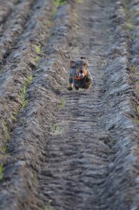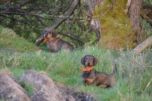 I acquired my first Teckel a little over two years ago and have had great fun with him since he arrived. I have written before of the many scrapes he has gotten me into as well as the few times he has saved the day. I find their scenting power exceptional and only a few weeks ago I passed a clump of Whin bushes well over 100 yards in diameter, we usually pass them every day either very early morning or late evening and none of the dogs pay any attention to them. The Lurchers didn’t pay any attention today either but as Archie passed behind them, he stopped and looked in. Then he went back a little further and slipped between two bushes and I could hear him rustling about inside further and further away until it went quiet for a few seconds then just as a pair of Bavarian lungs opened up simultaneously a pair of pheasants exploded from the centre of the Whins! The Lurchers cocked their ears and I smiled as Archie continued his baying and then knowing he wasn’t going to get a hunt, sniffed about and came back out and continued on the route we were on. Back in June last year he did sort of the same thing except in the cover was a Red hind and a calf which he drove out in my direction and continuously annoyed it for several minutes baying at it while getting kicked several times as I tried my best to get him out of the way without getting the same. The deer and the calf then took off with him in pursuit and that was the last I saw of him for over half a day. I returned to the area that evening to find him curled up below a road sign, soaking wet and absolutely covered in goose grass with a large cut to his forehead but otherwise fine. His antics are non-stop and I have at times considered keeping a diary for him alone as he gets into so much mischief he usually becomes the majority of any diary entry anyway. They are known to be a multipurpose dog and it is true that you could pretty much use one for anything, they take to shooting, beating, blood tracking, underground work or hunting with Hounds very easily. Archie hunted a year or so ago for a full day with the Sunnyland Beagles like he had done it all his life, even walking off the bog with the pack at the end of the day and looking like he fitted right in. The night we arrived at the house before the hunt he stayed in the van although he was no trouble he never slept much at all. However after a full day on the bogs of Galway keeping up with the hounds I put him back in the van that evening and we actually had to wake him on Sunday morning, and he rolled out looking like he had a night on the tiles!