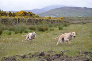The weeks went by and each Wednesday we would travel to the vet, get the dressings changed and get an x ray and a check over the joint. Each week that went by the vet seemed happy with it but overall wasn’t totally sure if Bella would run again with the nature of the injury & all I could do was hope. She had her dressings waterproofed by way of a drip bag as she found it difficult to adjust in the house and seemed to prefer to be outside, the arrangement worked well and she spent her days in the kennel and I fed her inside in the evenings, all while hoping the leg work come good in the end. As Christmas came and went the dressing and splint was removed and it was a strict no exercise programme for another 6 weeks until we would see finally how the leg had healed.