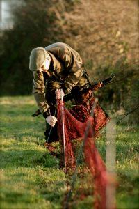 In recent times, we have saw an explosion in the more modern quick set net – A method developed by Scottish Long Netter, snare man, trapper & in my opinion the UK and Irelands foremost authority of Long Netting, Glen Waters. The quick set method is the traditional method but with the poles attached to the net. At some later stage after Glens method someone came up (Perhaps him) with the idea of a basket which hangs around ones neck, which allows the net to be easily carried about and ran out and in very quickly, which is why it is called the “Quick Set” method. The poles on a quick set are usually fibreglass, 8mm and topped with a grommet for your safety! I once took a friend to casualty with a fibreglass long net pole protruding from the back of his arm at 3.00am on Saturday morning. The net which had very fine fibreglass poles and no grommets was being run out and he slipped while lifting it going downwards on a hill, and landed on the pole which went through his shirt and then his arm. The situation took a little explaining at the hospital but after having it removed, he was right as rain!